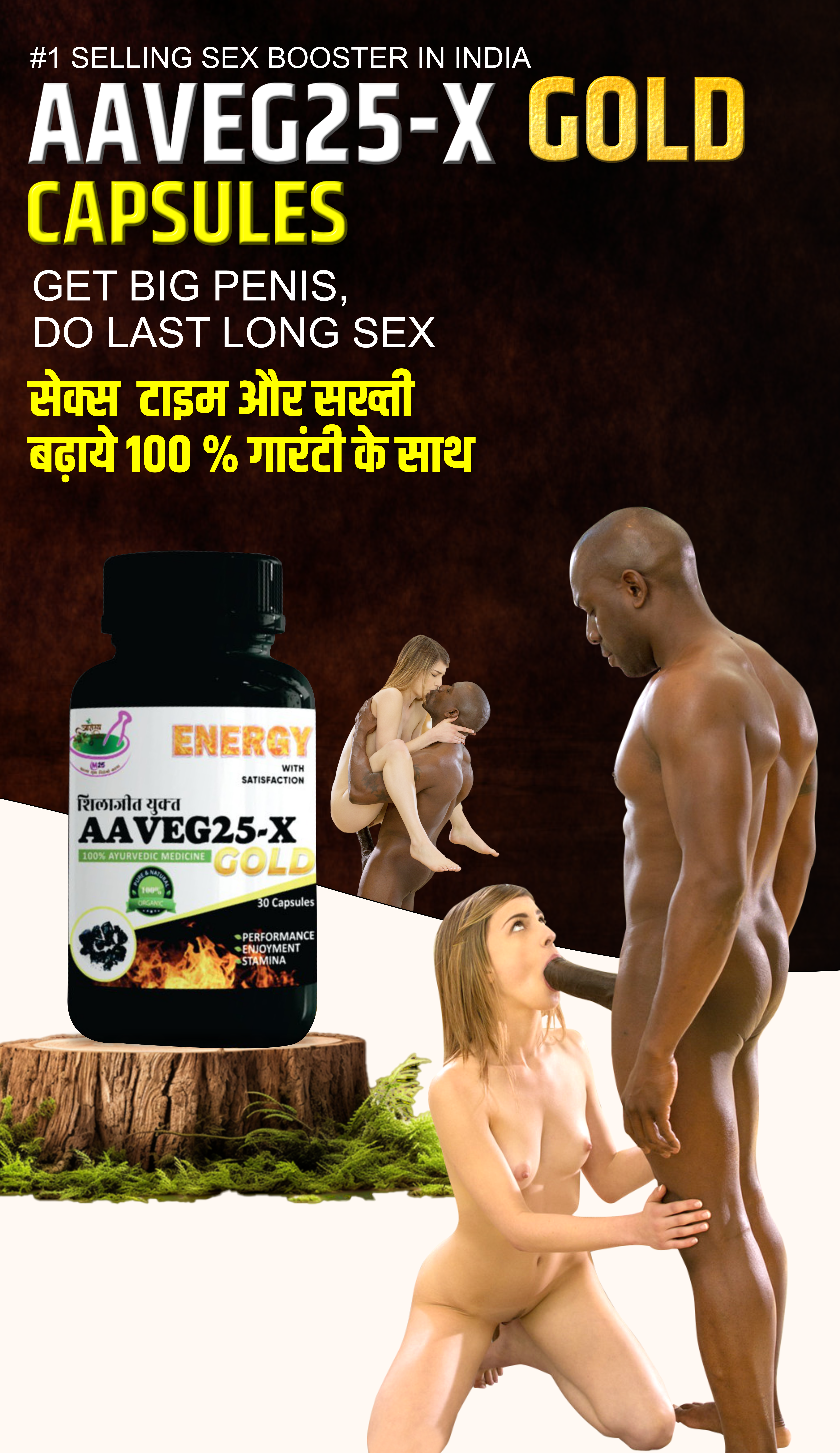 17 शक्तिशाली जड़ीबूटियों और भस्मों से बना AAVEG25-X GOLD CAPSULES भारत का सबसे ज्यादा बिकने वाला सेक्सवर्धक है। यह नेचुरल तरीके से खोई हुई मर्दाना शक्ति को रिस्टोर करने का काम करता है।